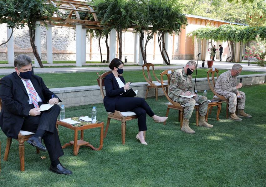 ژنرال مککنزی در دیدار با اشرف غنی گفت ایالات متحده آمریکا در کنار افغانستان ایستاده است تا این کشور «دوباره به مکان امن برای تروریسم مبدل نشود». در این دیدار، اشرف غنی صلح را خواسته اساسی مردم و اولویت مهم حکومت خواند و گفت طالبان باید از جنگ و خشونت دست بکشند.