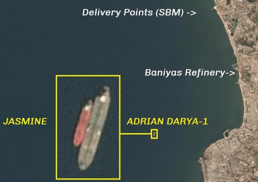 شرکت ردیابی نفتکشها، تانکر ترکرز، خبر داد که یک نفتکش ایرانی با ظریفیت ۳۵۰ هزار بشکه کنار نفتکش آدریان دریا۱ در نزدیکی پالایشگاه بانیاس سوریه پهلو گرفته است.