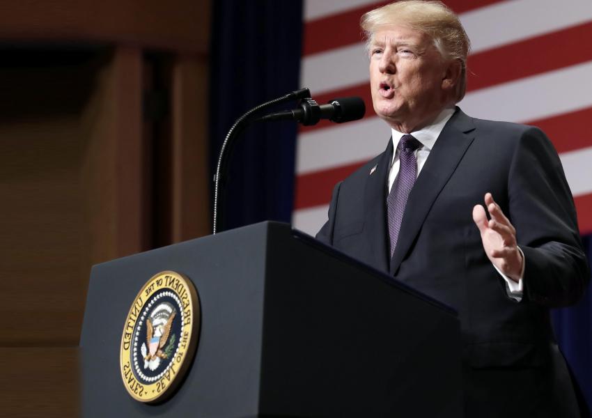 رییس جمهور آمریکا ضمن "متهم کردن ایران به عدم پایبندی به توافق برجام و انحراف از این توافق گفت که وی "به منظور رویارویی با ایران و جلوگیری از دستیابی ایران به سلاحهای اتمی، سپاه پاسداران را بهدلیل حمایت از تروریسم مورد تحریم قرار داده و توافق هستهای بین ایران و کشورهای ۱+۵ را تایید نکرده است."