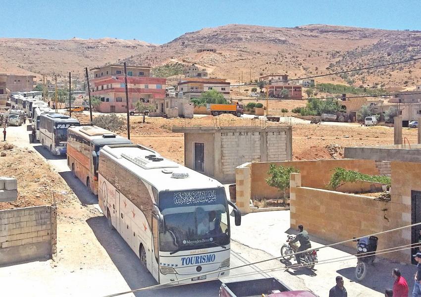 شبکهی الجزیره گزارش داد که ۱۱۶ کامیون حامل عناصر النصره، خانوادههایشان و شمار زیادی از پناهجویان سوری، عرسال لبنان را بهسمت ادلب ترک کردند.