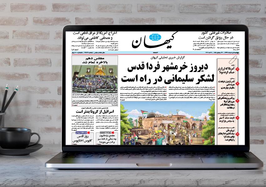 اما آن سوی میدان، روزنامههای اصولگرا به استقبال روز قدس رفتهاند که قرار است در تهران بهصورت نمادین انجام شود و راهپیمایان بهدلیل شیوع کرونا، با ماشین مسیر را طی کنند. تیتر روزنامههای تندرو و اصولگرا در یک کلام نابودی اسرائیل است و روزنامههای کیهان، جوان و حمایت از همان پوستر وبسایت رهبر جمهوری اسلامی استفاده کردهاند که در آن عبارت «راهحل نهایی»، که یادآور هولوکاست و کشتار یهودیان به دست نازیهاست، به کار رفته است. کیهان تیتر زده «دیروز خرمشهر، فردا قدس، لشکر سلیمانی در راه است» و روزنامه وطن امروز با تیتر «به خون سلیمانی»، وعده داده است که پیروان سردار سلیمانی اسرائیل را نابود میکنند؛ روزنامه خراسان نیز از تفاوت روز قدس امسال نوشته است که به گفته محمدمحسن فایضی، دغدغهمندان از ماهها پیش به دنبال راهی برای جبران برگزار نشدن این راهپیمایی بودهاند. نویسنده خراسان نوشته است که مساله فلسطین و زندگی فلسطینیها باید برای مردم شرح داده و به شبهات هم پاسخ داده شود.