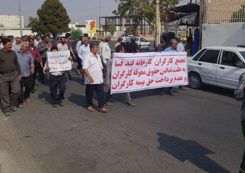ويقول عمل شركة "فسا" في محافظة فارس، وسط إيران، إنهم لم يتقاضوا رواتبهم منذ خمسة أشهر، مما اضطرهم إلى إقامة تجمعات احتجاجية أمام المباني الحكومية.